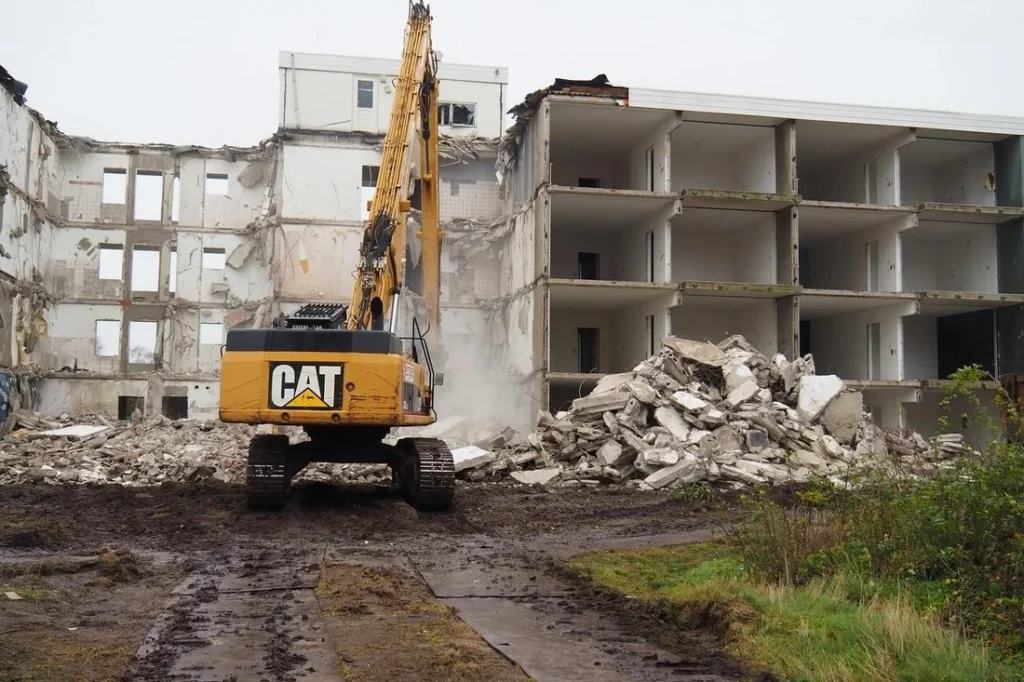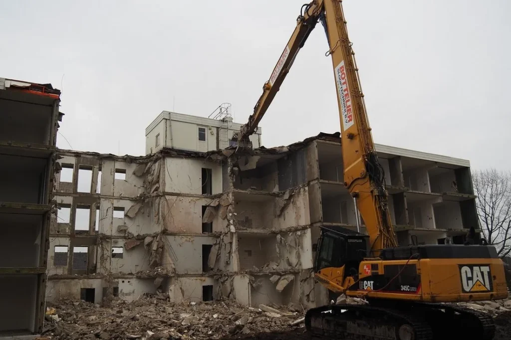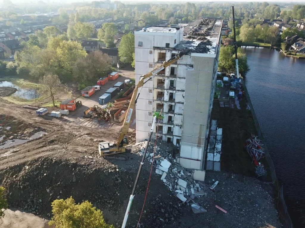 Hieronder een fotocollage van de sloop van een grootschalige serviceflat: